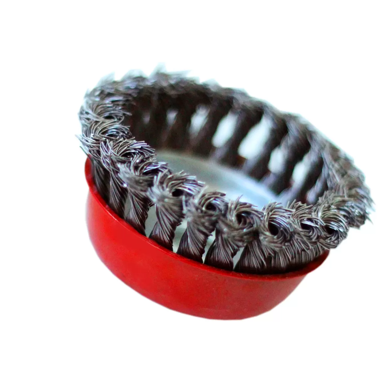 Чашечная щетка 100 мм — сменный элемент для угловых шлифовальных машин. Применяется для шлифовки, полирования, зачистки от лака, краски и коррозии различных поверхностей. Тип крепления - М14, Max RPM - 3750.