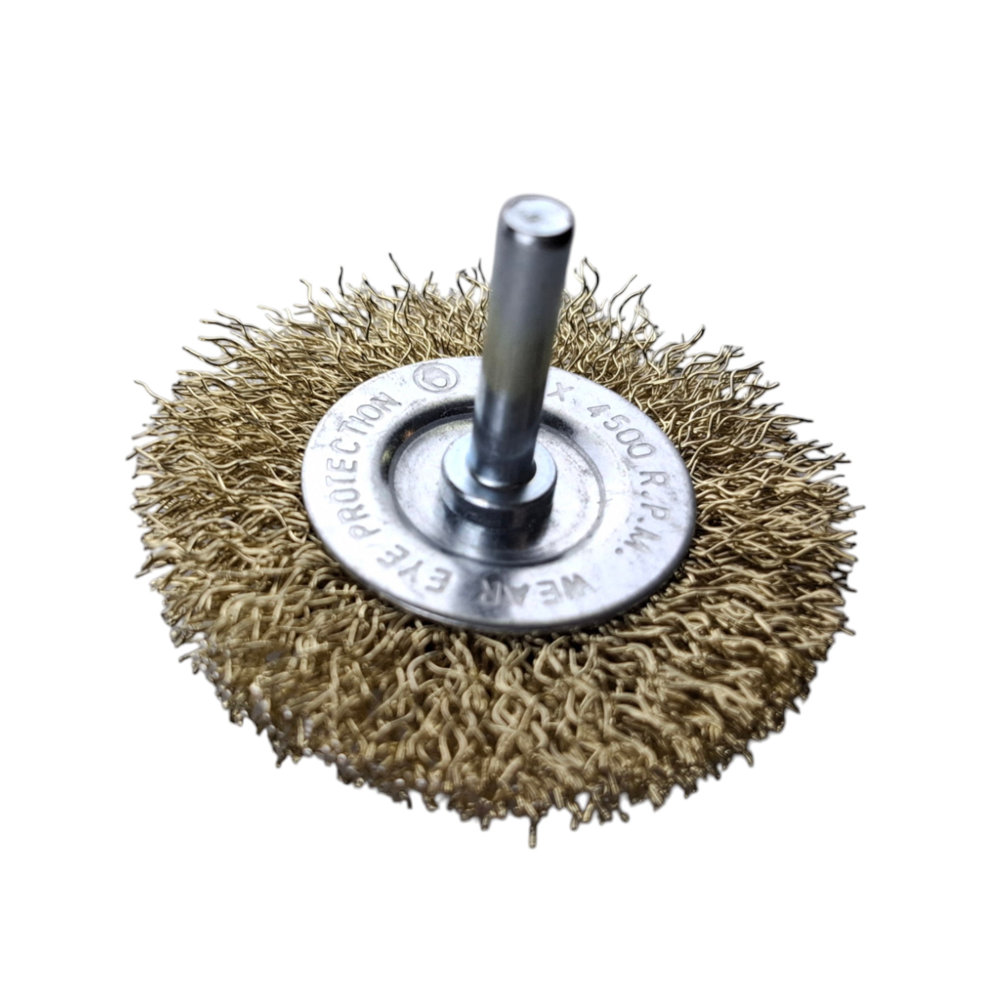Щетка плоская с проволочной латунированной щетиной 65 мм от "MAXIMUM QUALITY TOOLS" крепится на дрель или шуруповерт через резьбовую шпильку 6 мм.